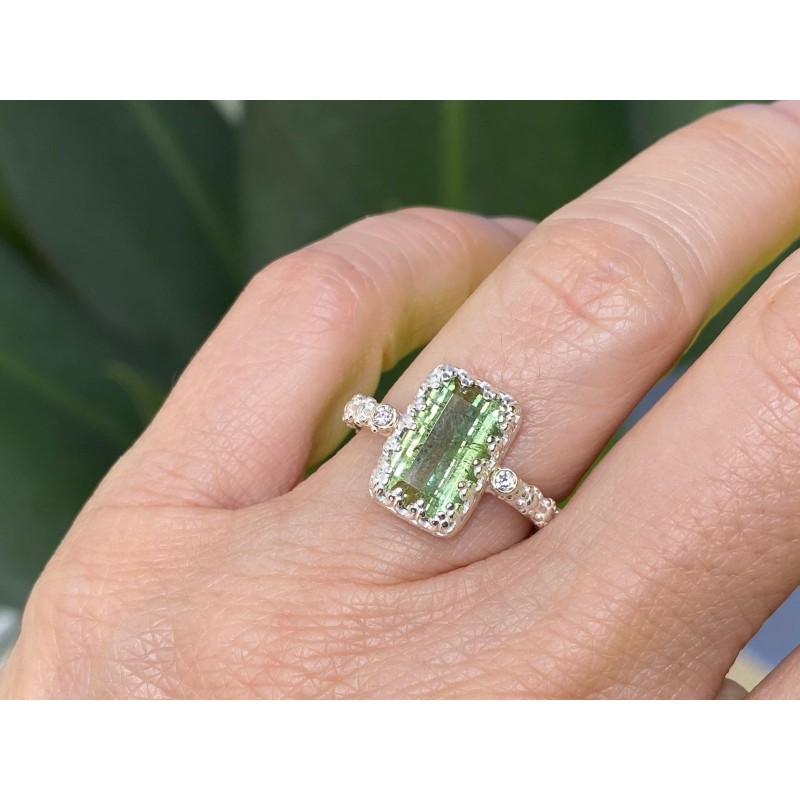Turmalina maravilhosa retangular com dois diamantes !| Pedras | |