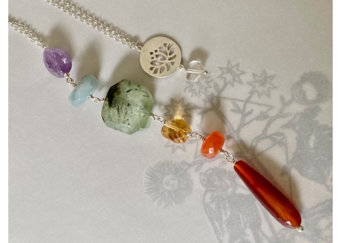 As pedras alinhadas como os chakras e suas cores, uma peça super alegre e vai bem com todas os estilos de roupa.
