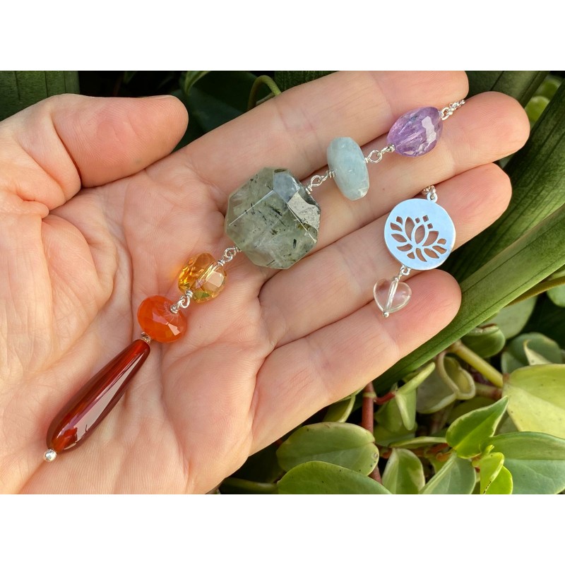 As pedras alinhadas como os chakras e suas cores, uma peça super alegre e vai bem com todas os estilos de roupa.